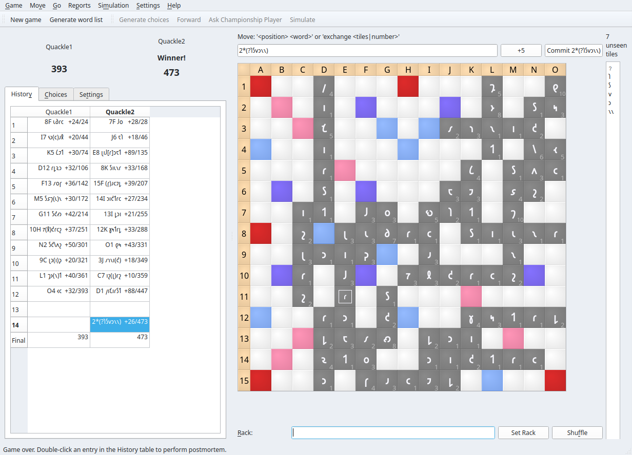 Warning: If you play Scrabble against Quackle, in any language, you're